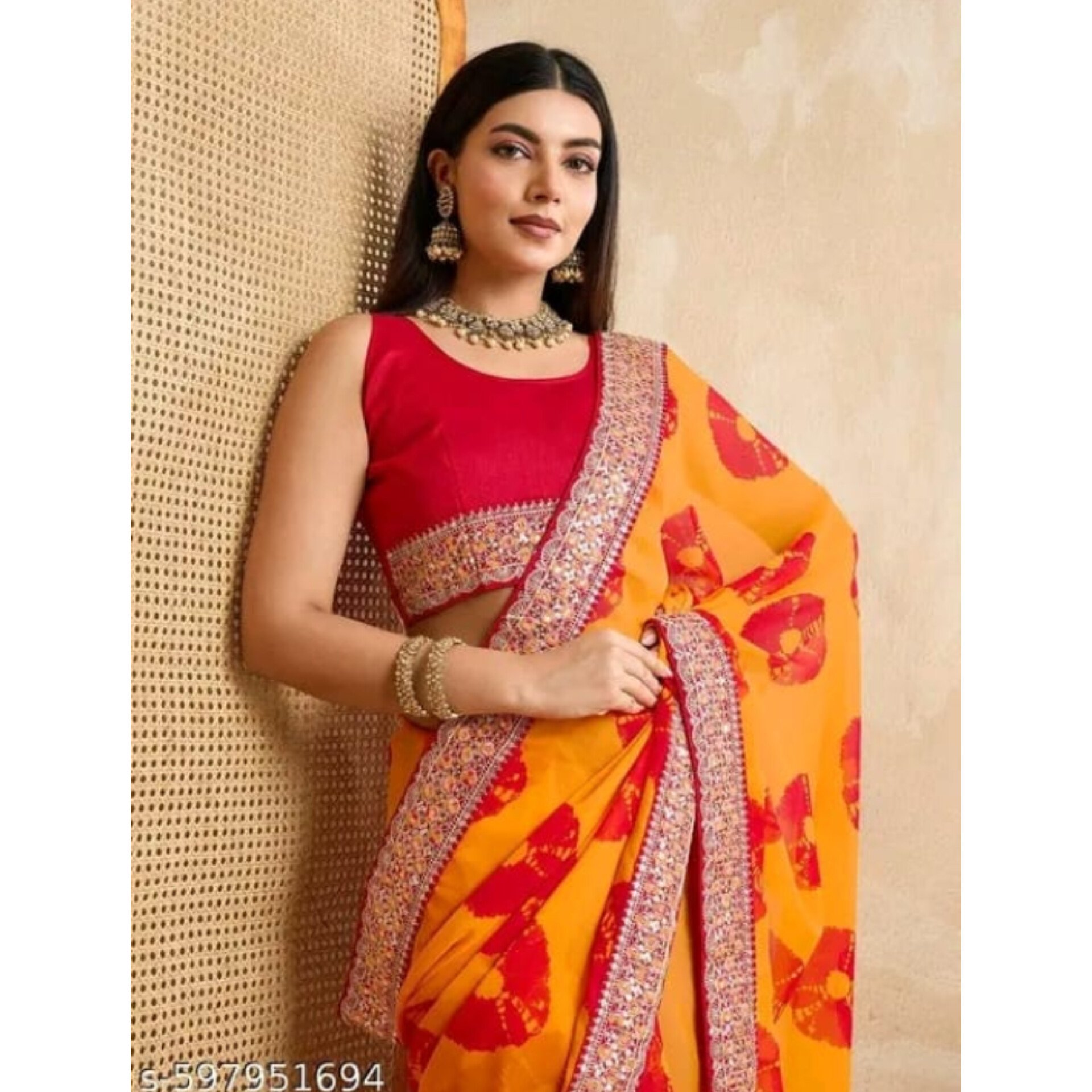 Be the first to review “Bani- Bandhani Embroidered Saree In Georgette”