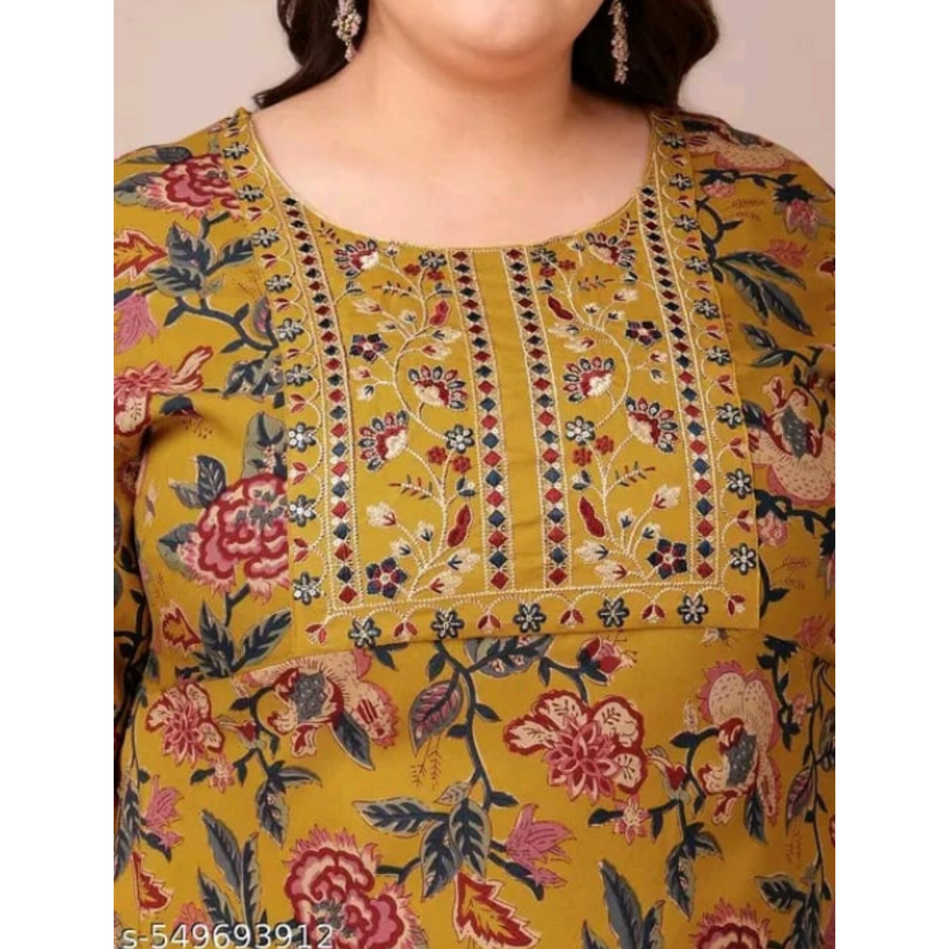 The Plus Size Anarkali Cotton Kurti is a stylish kurti made from soft, breathable viscose rayon with elegant floral embroidery and mirror work on the square yoke. Designed in a flattering Anarkali silhouette, it features three-quarter sleeves and a flowy flare that suits all body types. Available in plus sizes: