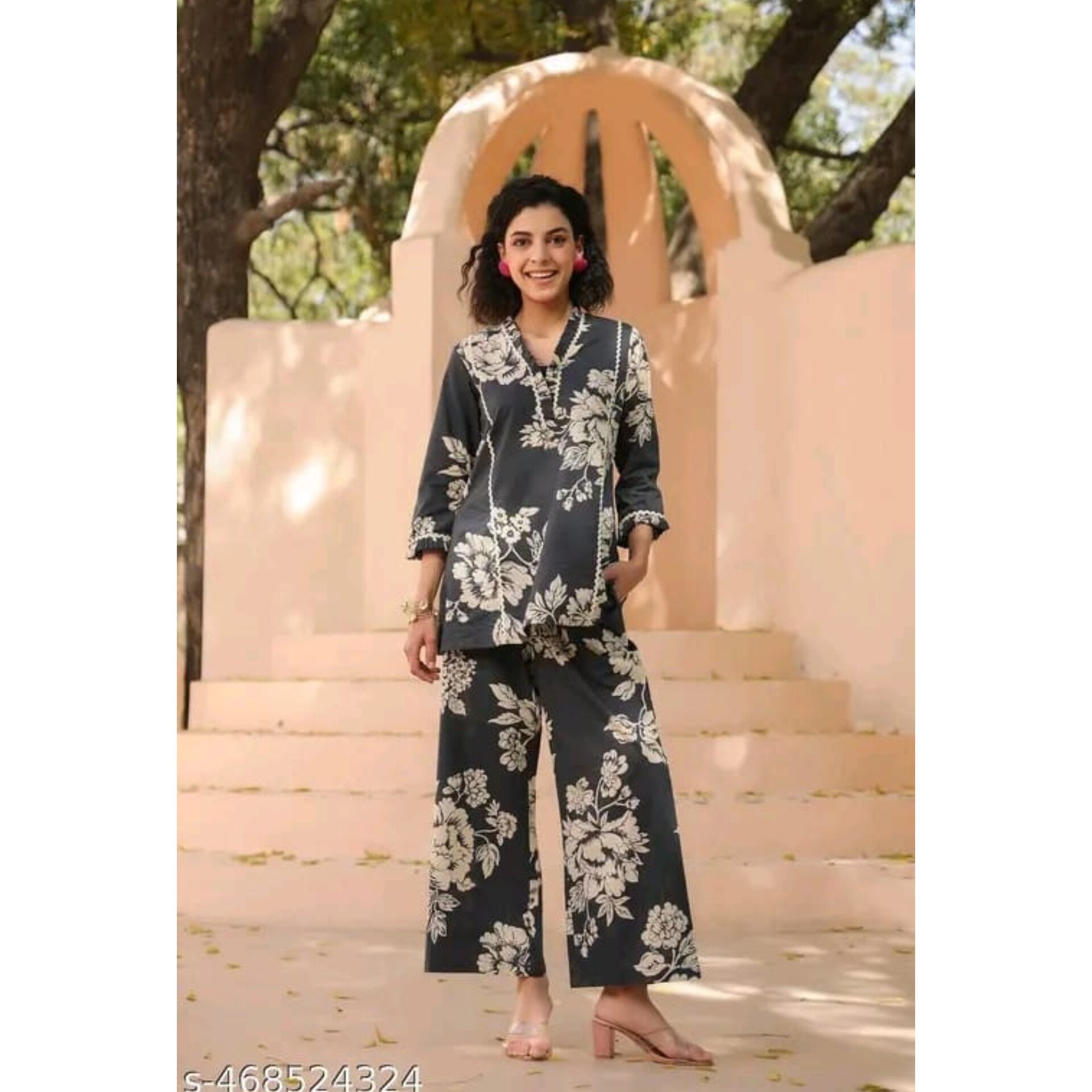 Stay stylish and comfortable with our Cotton Cord Set, made from soft and breathable 100% pure cotton. Designed with a floral print, this set is perfect for any occasion, offering both elegance and ease. The top features long sleeves with a flattering length of 31 inches, while the bottoms offer a relaxed fit with a 37-inch length. Available in multiple sizes: