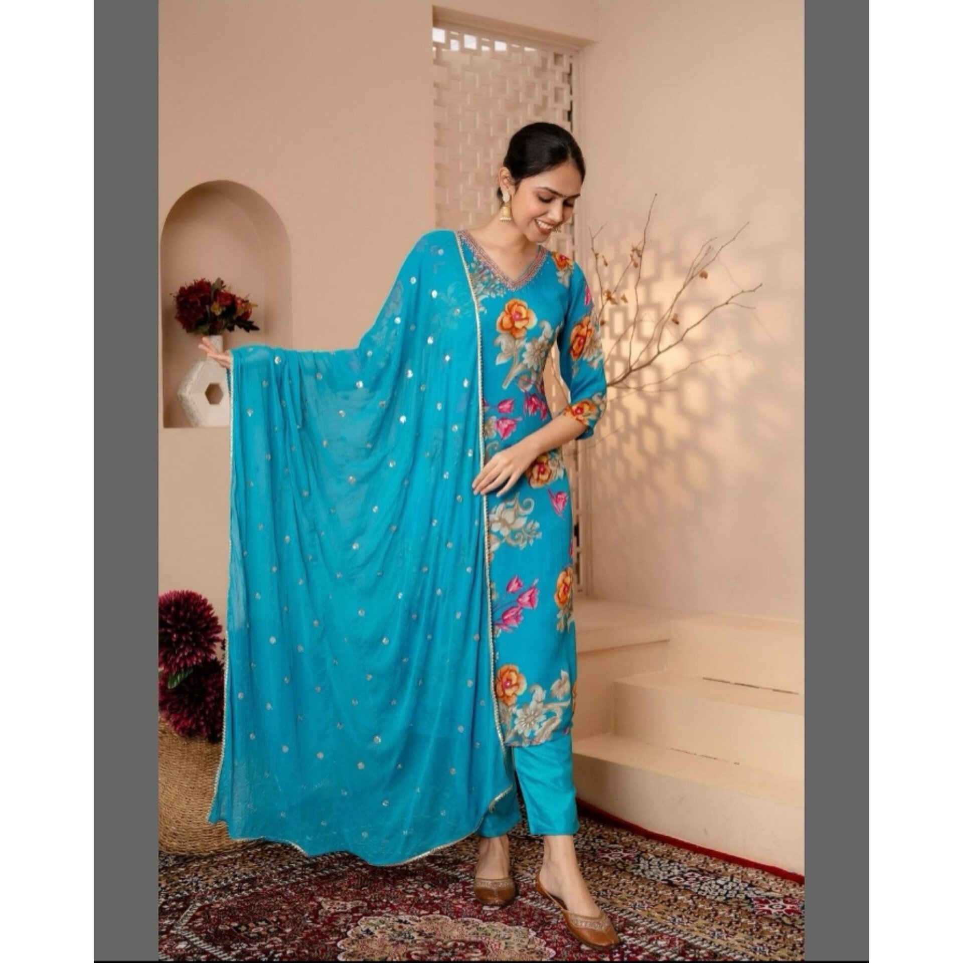 Siya Floral V-Neckline Suit
