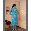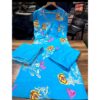 This stylish and comfortable cotton kurti pant set is made from soft 60*60 cotton fabric. It features a beautifully printed kurti with a classy chest yoke, V-neck design, and subtle zari work. Paired with a simple pant and a matching dupatta, this set offers a cool and elegant. Available in sizes M (38), L (40), XL (42), XXL (44), and XXXL (46).