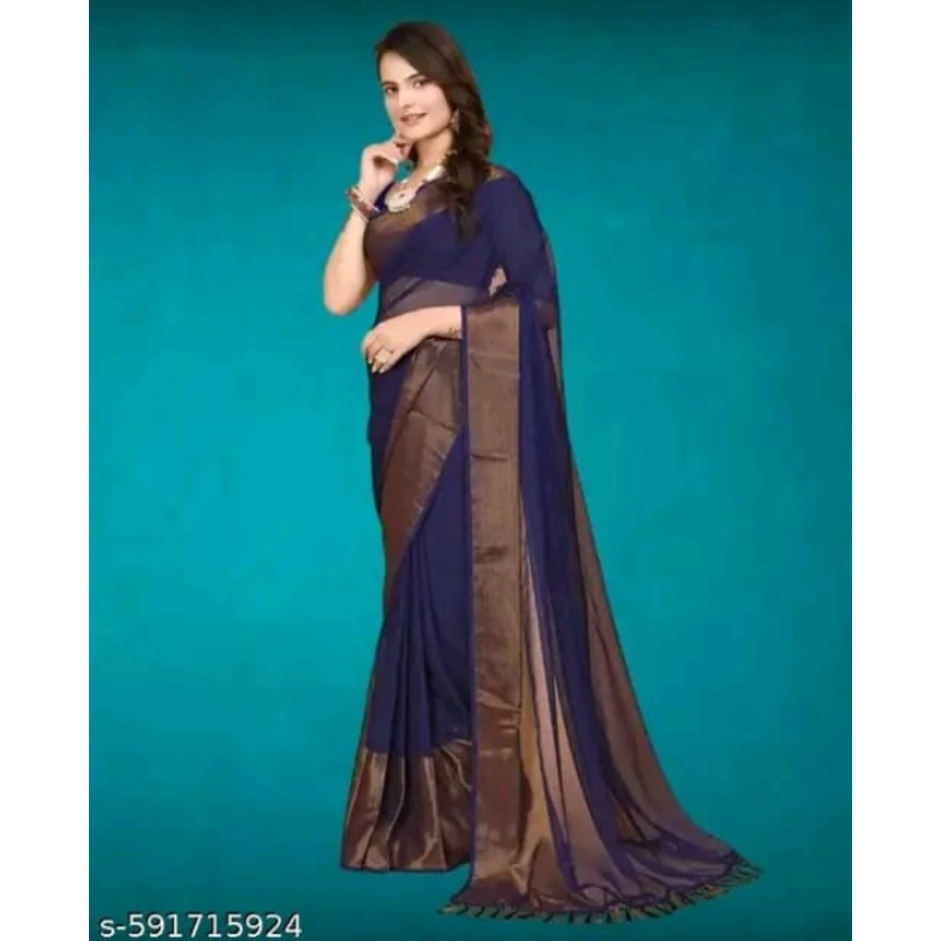 This lightweight, ready-to-wear saree is crafted from soft chiffon. This saree offers instant grace and effortless draping, perfect for parties and festive occasions. It comes with a matching chiffon blouse piece, approximately 75 cm in length, designed with a pattern that complements the saree’s border. The blouse can be detached and stitched as desired. With a saree length of 5.2 meters and blouse length of 0.8 meters, this free-size ensemble combines convenience with classic charm.