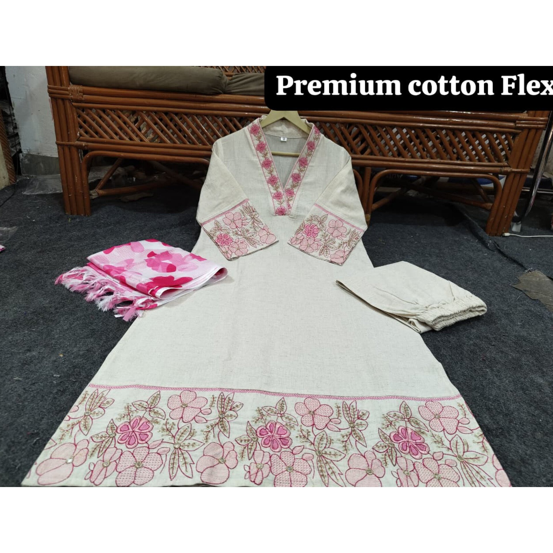 Kivah- Cotton Flex 3 Piece Kurta Set With Zari Work