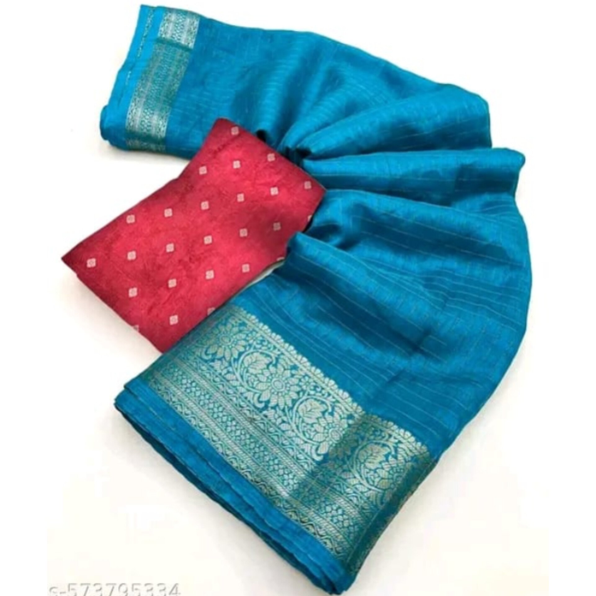 This elegant saree is crafted from soft Dola silk and features a stylish checks pattern with a beautifully embellished finish. It comes with a separate blouse piece made of high-quality viscose silk, designed to match the border for a cohesive look. The saree measures 5.5 meters, while the blouse piece is 0.8 meters in length, making it a free size option for various occasions