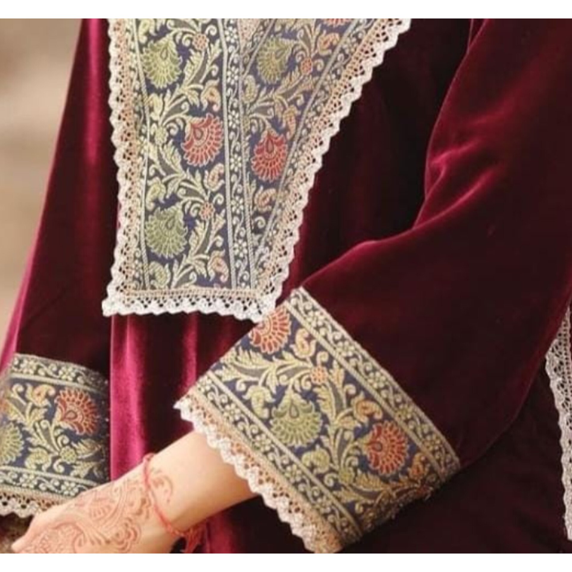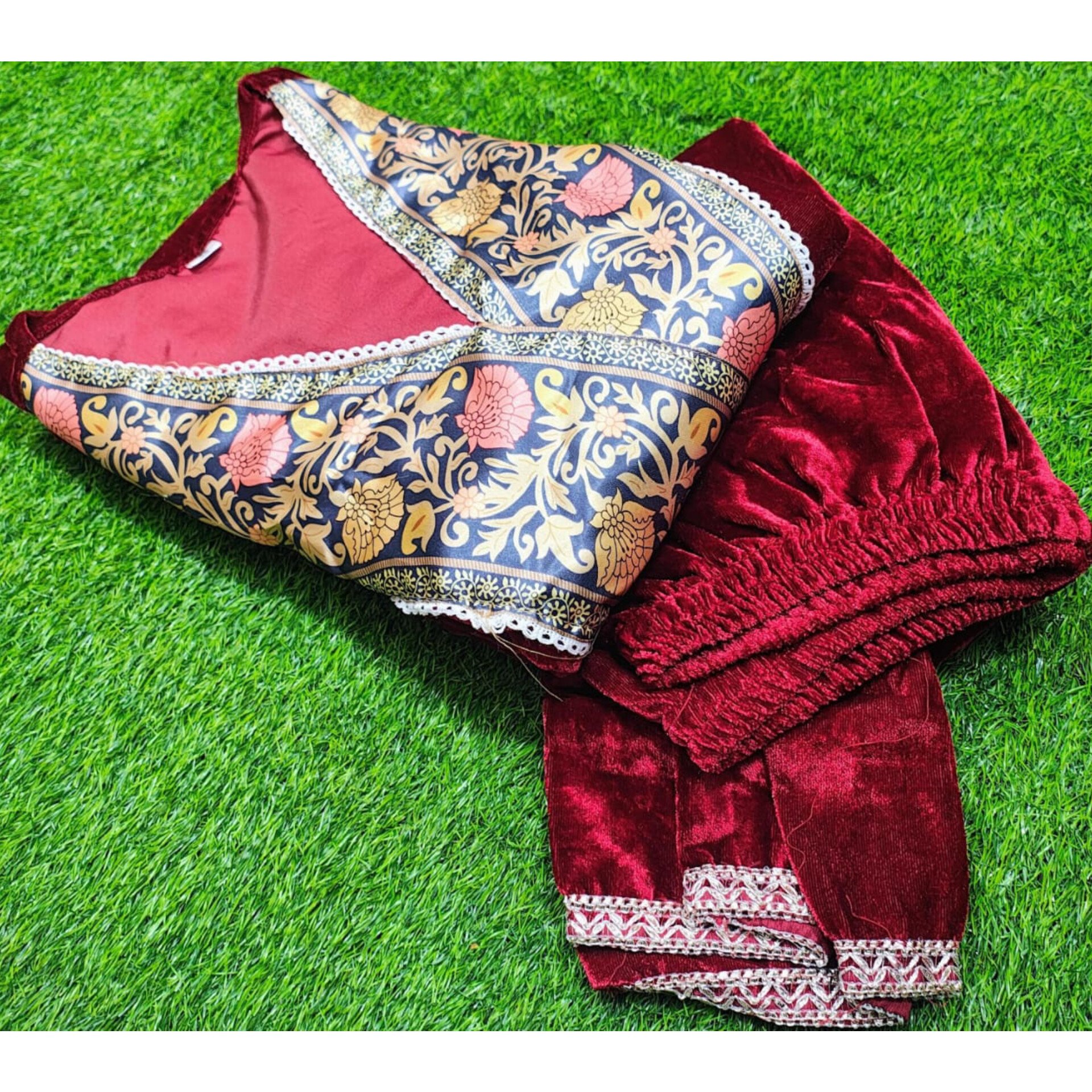 Mehira- Velvet Suit Set With Lace Detailing