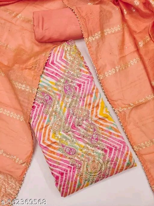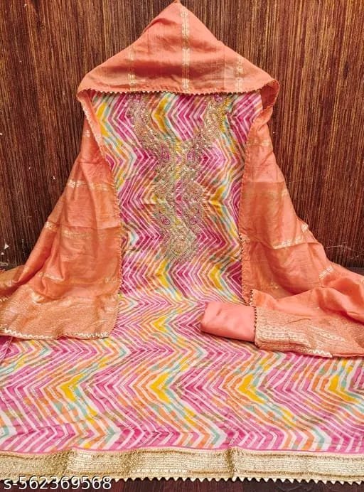 Elevate your ethnic wardrobe with this luxurious Shimmer Silk Digital Print Unstitched Suit Set, designed to blend tradition with modern elegance. This 3-piece ensemble features a premium Shimmer Silk top adorned with digital prints and delicate coding embroidery, exuding festive charm and smooth Santoon bottom. The look is completed with a rich Silk Jacquard dupatta, adding a touch of grandeur. Perfect for weddings, celebrations, and festive occasions, this unstitched dress material promises timeless style and sophistication.