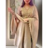 This Silk Anarkali Suit Set for Women is crafted from premium Vichitra Silk, featuring a fully stitched 48” kurti with intricate embroidery, a matching stitched bottom and a 2.20m dupatta with designer borders.This elegant A-line ensemble with three-quarter sleeves and a round neck is perfect for weddings, festive occasions, and ethnic parties.. Available in sizes: