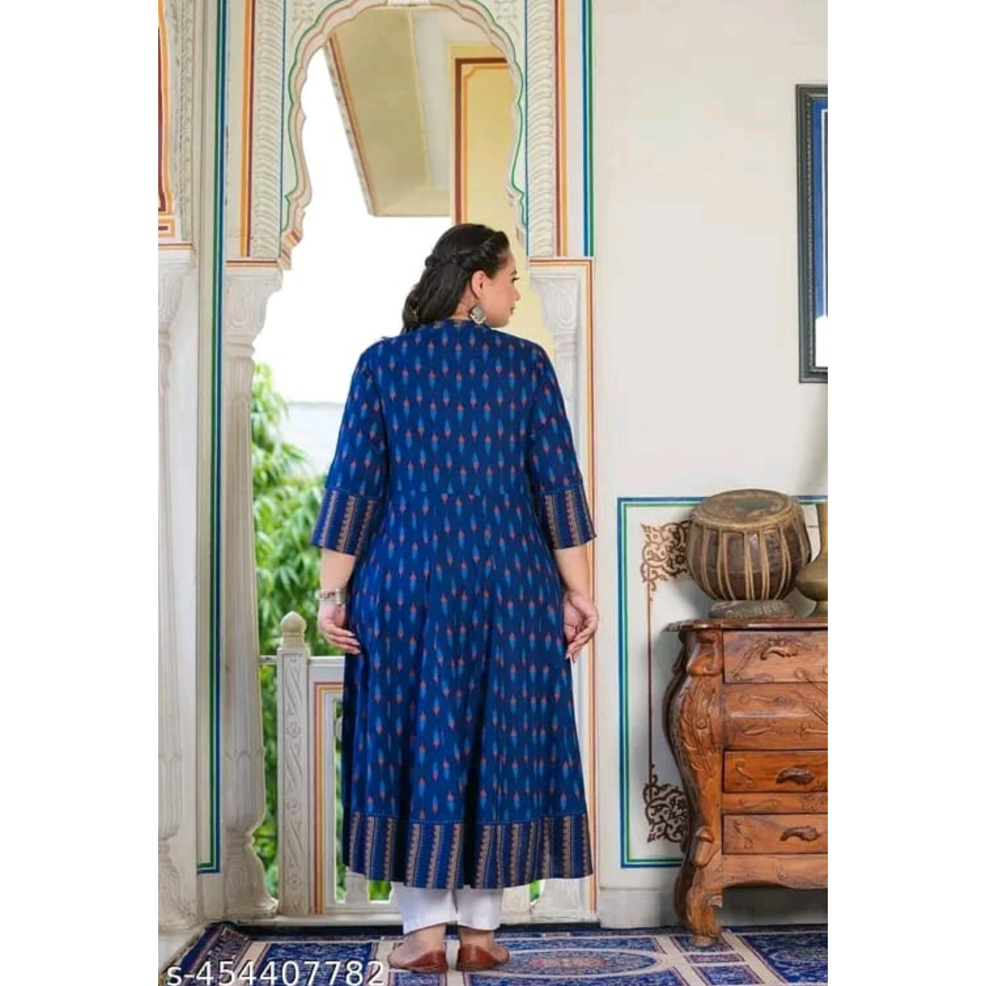The Women’s Printed Anarkali Kurti is a perfect blend of comfort and traditional style. Crafted from soft viscose rayon, it features beautiful print, shirt collar, button placket, and three-quarter sleeves. Ideal for daily wear, this Anarkali kurti offers a flattering fit with a length of 48 inches. Available in extended sizes to suit all body types: XXXL – 46, 4XL – 48, 5XL – 50, 6XL – 52, 7XL – 54, 8XL – 56.