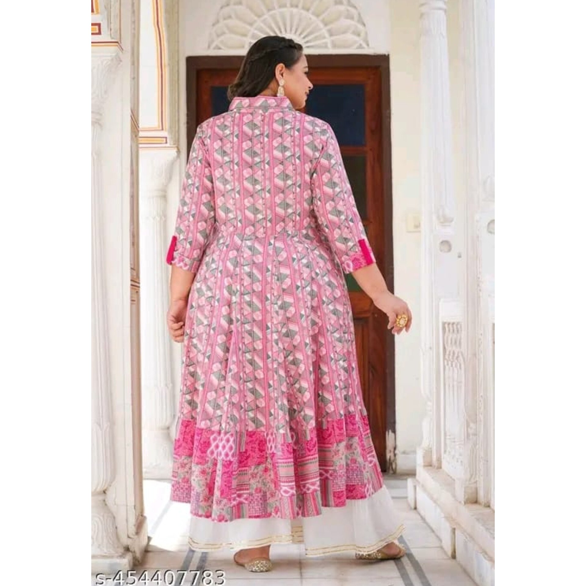 The Women’s Printed Anarkali Kurti is a perfect blend of comfort and traditional style. Crafted from soft viscose rayon, it features beautiful print,shirt collar,button placket, and three-quarter sleeves. Ideal for daily wear, this Anarkali kurti offers a flattering fit with a length of 48 inches. Available in extended sizes to suit all body types: XXXL – 46, 4XL – 48, 5XL – 50, 6XL – 52, 7XL – 54, 8XL – 56.