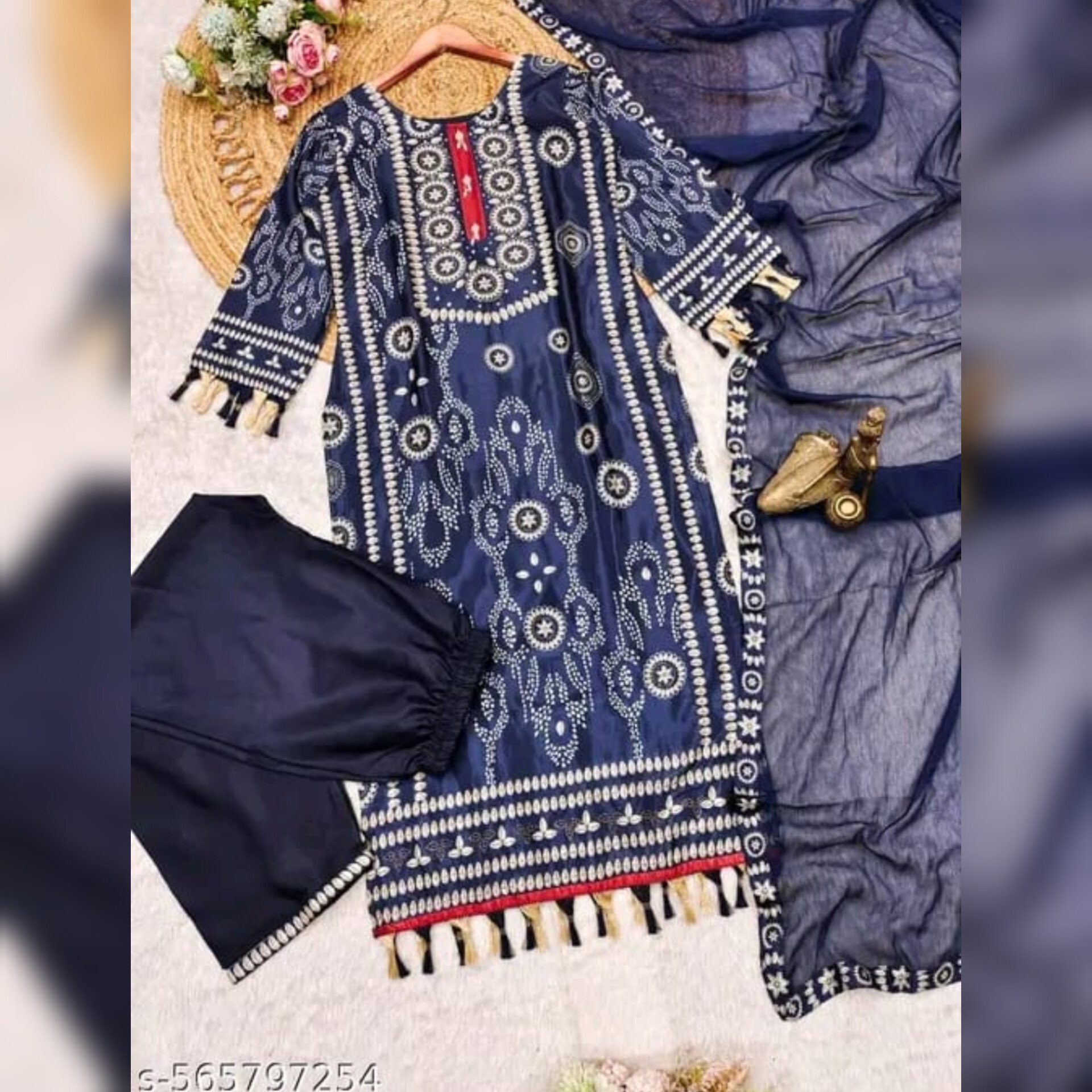 This Kurti Pant and Dupatta Set is a graceful and elegant outfit perfect for parties and festive occasions. Crafted from premium Shantoon fabric for both the kurta and pants, and paired with a soft, breathable Mulmul dupatta. The A-line kurta features a round neckline, long regular sleeves, and a printed floral pattern enhanced with fine embroidery. The top length is 44 inches, bottom length is 38 inches (40 inches in 4 XL), and dupatta length is 2.1 meters, consistent across most sizes. Available in a wide range of sizes to ensure a perfect fit: